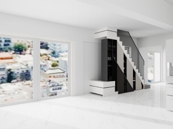 Ζήστε την απόλυτη εμπειρία στο πιο προνομιακό διαμέρισμα του Κτιρίου. Αυτό το εντυπωσιακό, ενεργειακά αυτόνομο οροφοδιαμέρισμα με σοφίτα, καταλαμβάνει ολόκληρο τον τελευταίο όροφο, προσφέροντας απαράμιλλη ιδιωτικότητα και μια πανοραμική θέα που κόβει την ανάσα.